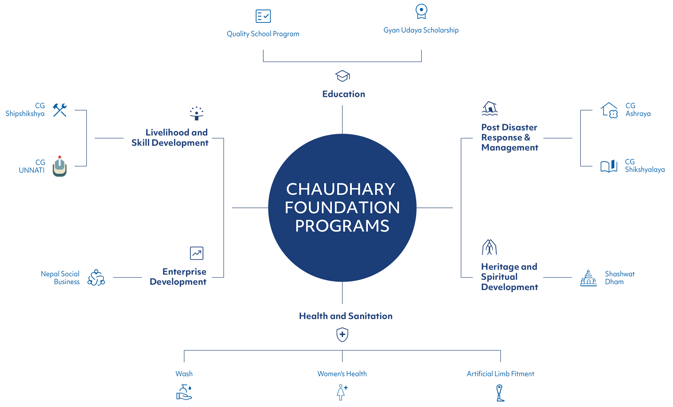 Towards Sustainable Social Reforms since 1995 Chaudhary Foundation: An Organization since 1995, specializing in Health, Livelihood, Education, and Disaster Risk Response & Management, and Enterprise Development. We are committed to promoting social development and supporting sustainable development goals.